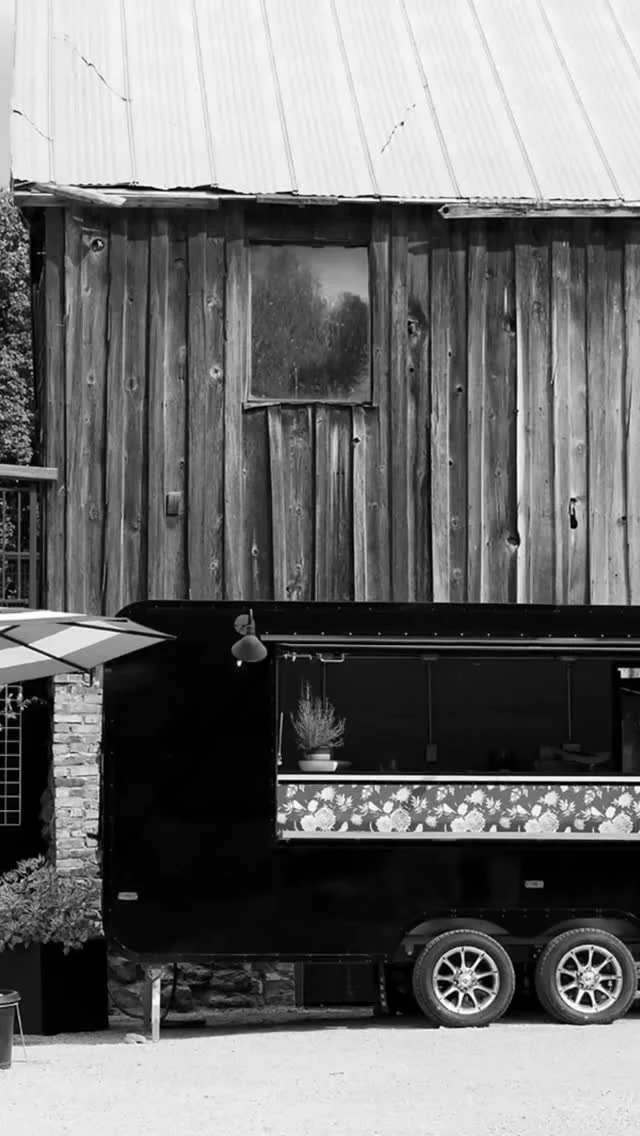 The Quail (seating capacity 40) Heated & air-conditioned space: Ideal for rehearsal dinner, Sunday family breakfast and/ or cocktail hour after the ceremony. Kitchen area with refrigerator, freezer w /bagged ice, and sink. Easy catering accessibility. Mural by @tobyrae. Moveable antique bar, cocktail tables & black bistro chairs w /black cushions.
